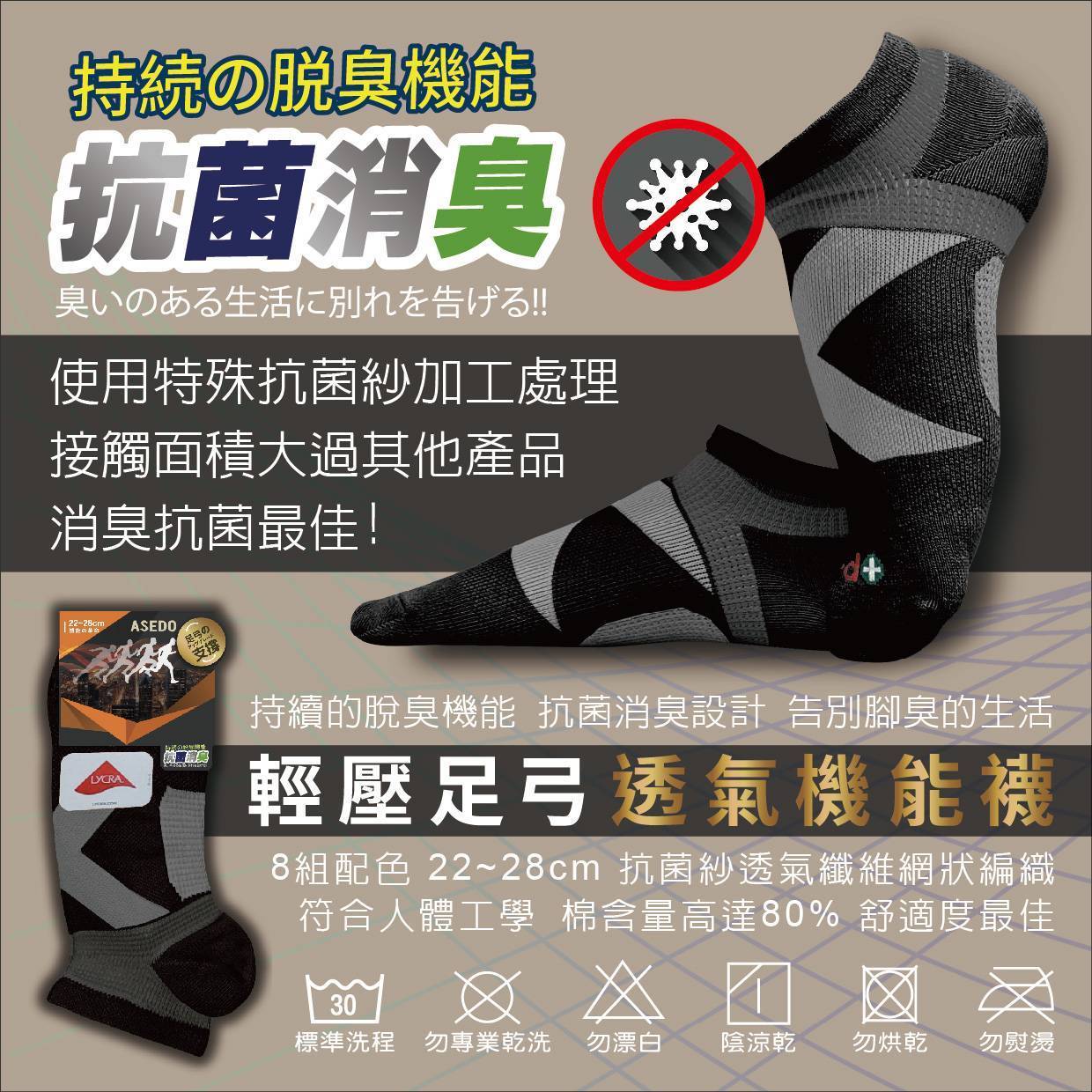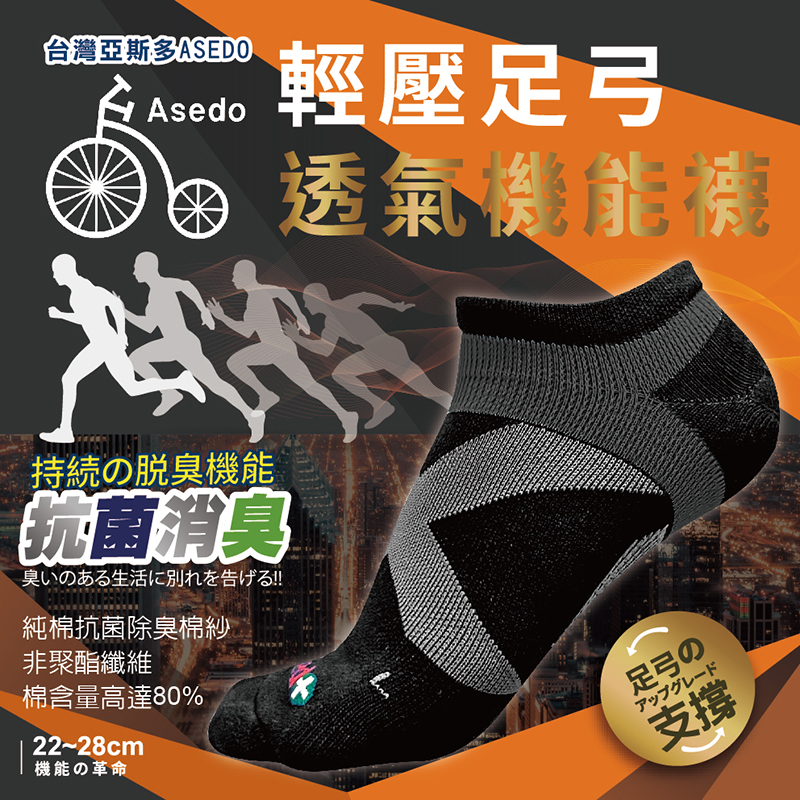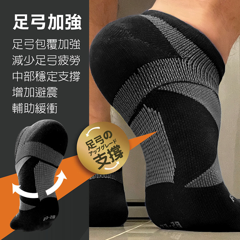 輕壓力抗菌除臭足弓踝襪8雙組 全黑限定版