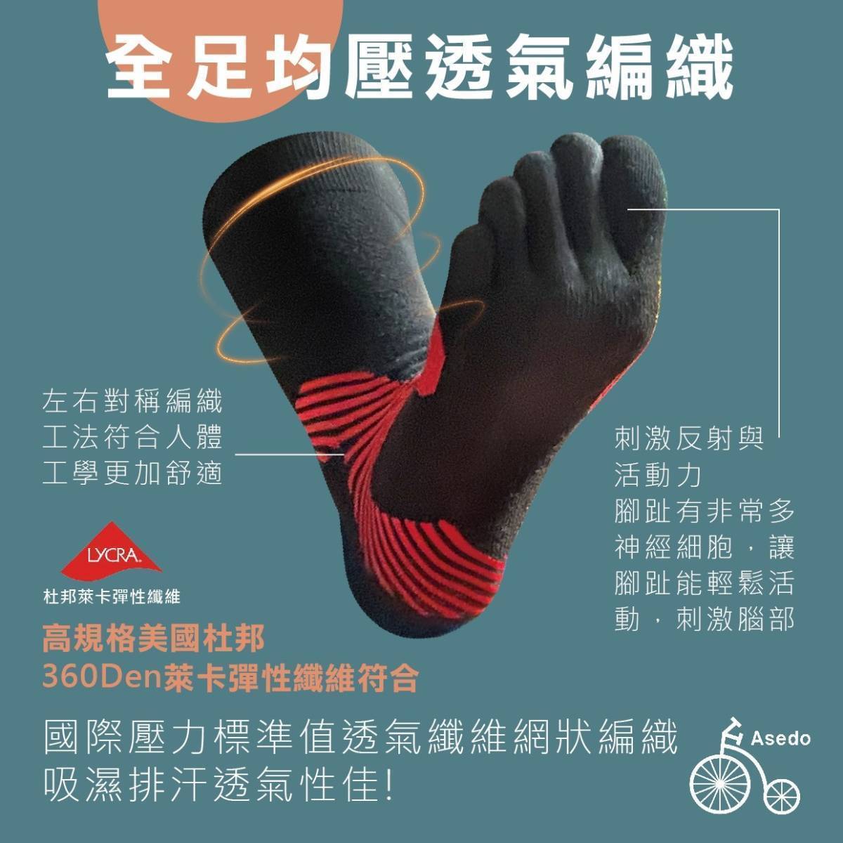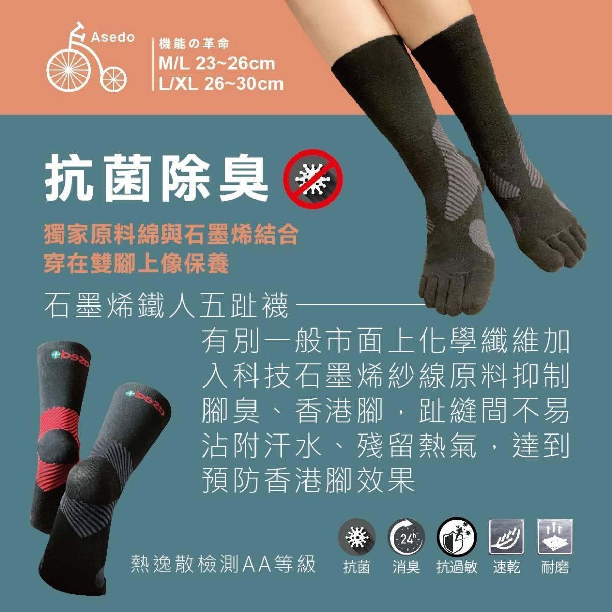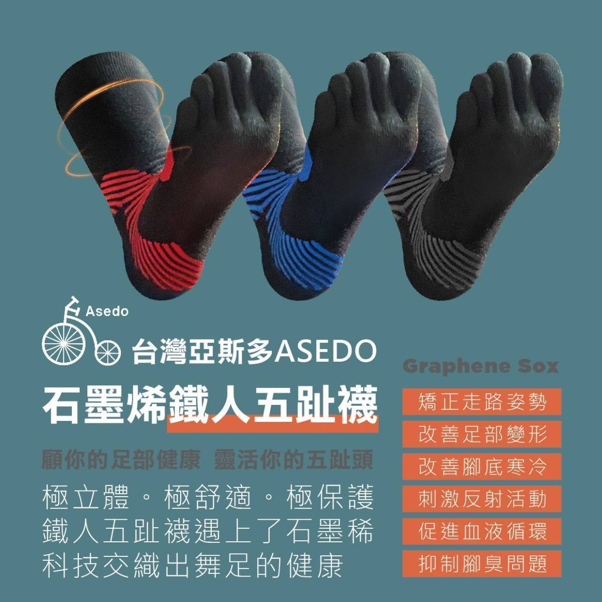 石墨烯鐵人五趾長襪