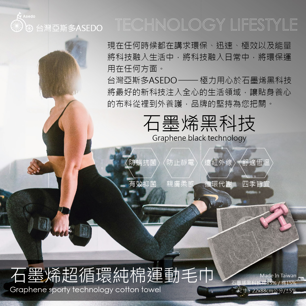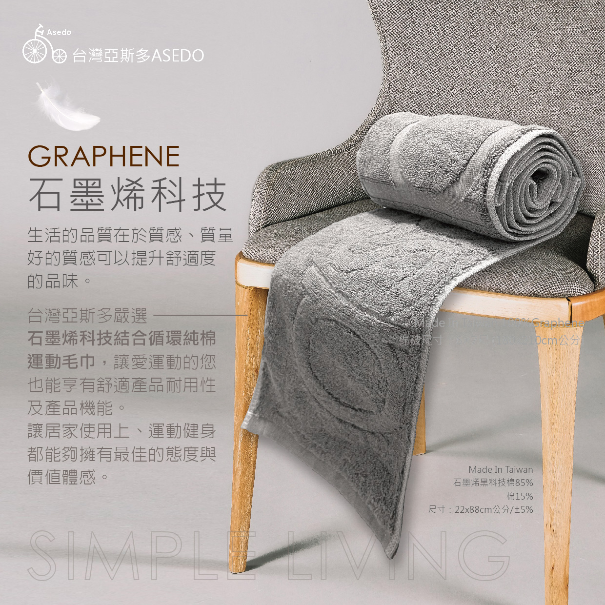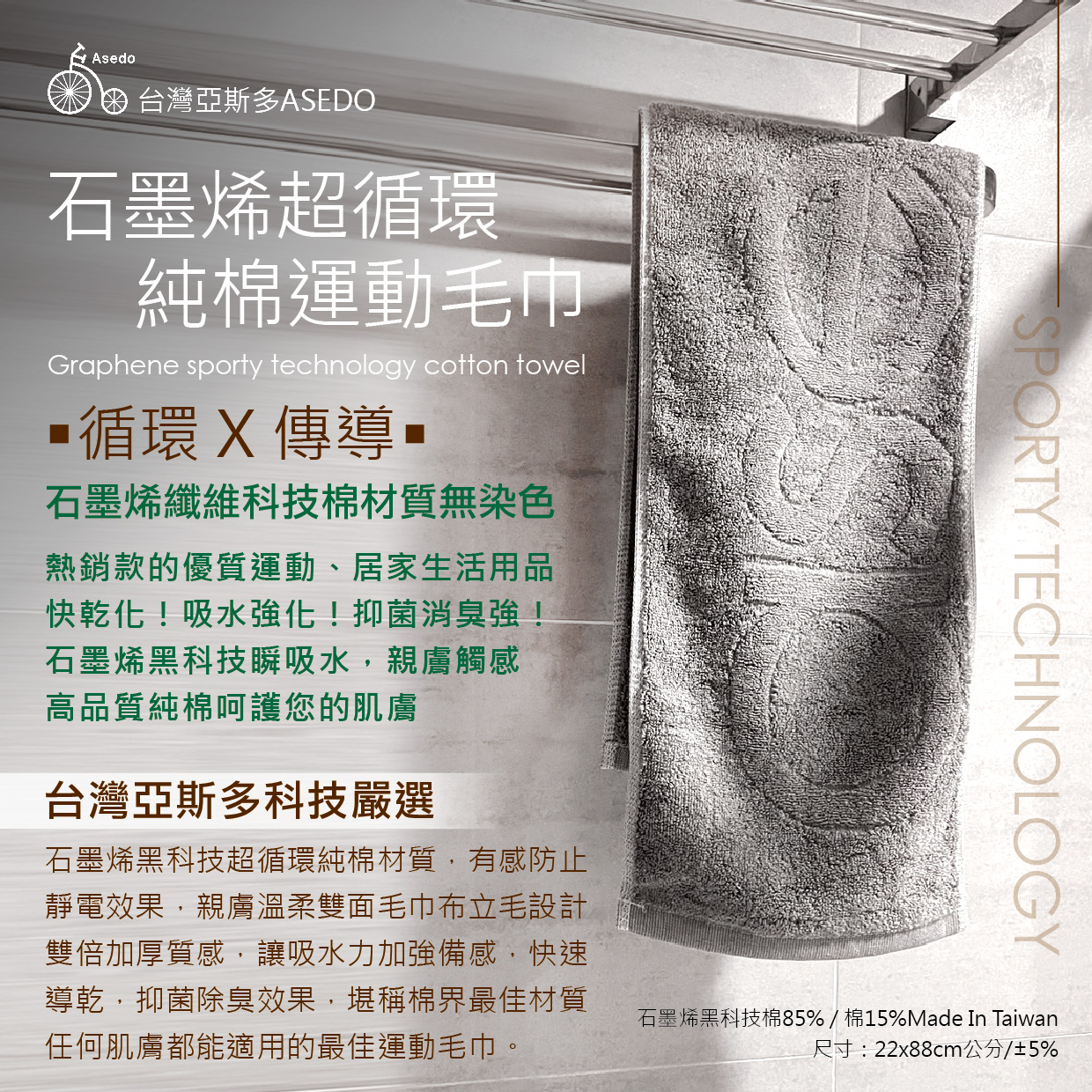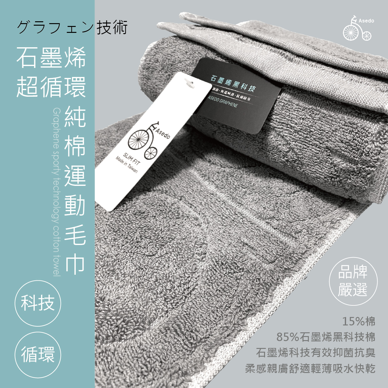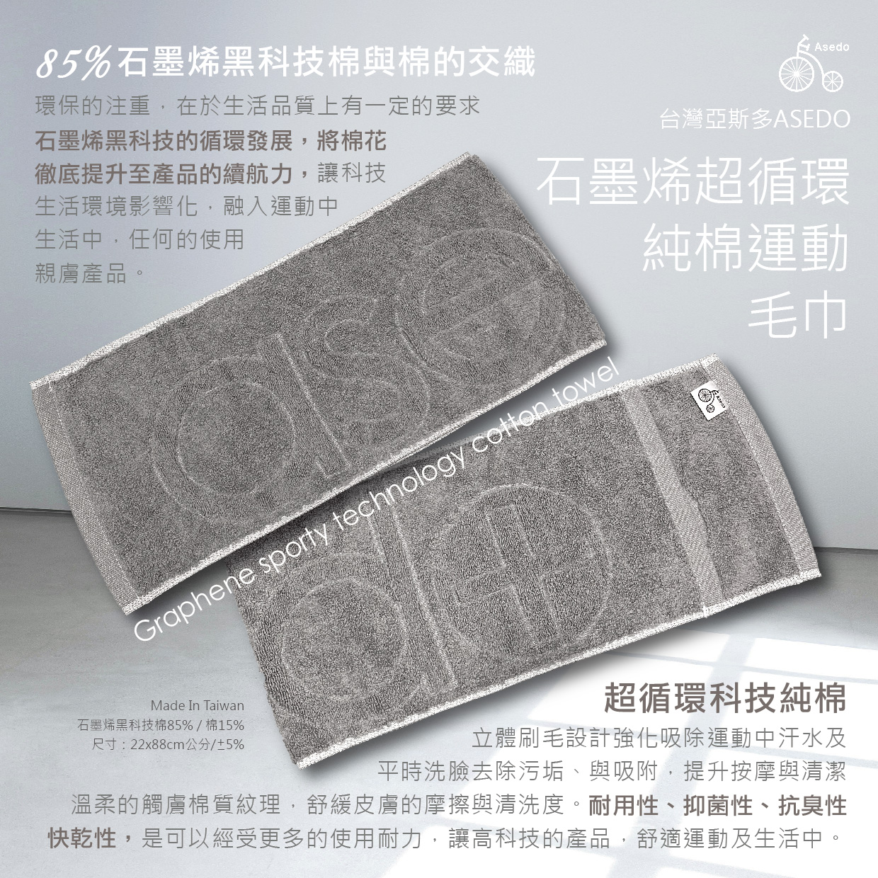 石墨烯超循環純棉運動毛巾